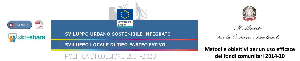 - COESIONE 2020 – Sviluppo Urbano Sostenibile Integrato – POLITICHE COESIONE UE 2014-2020;