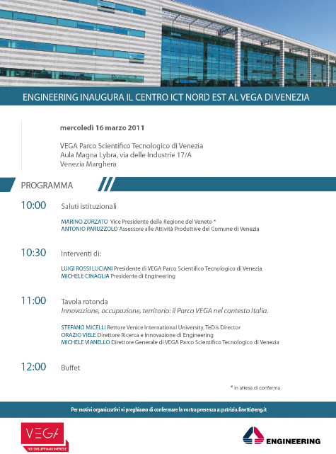 - Il VEGA di Venezia verso la cittadella della Conoscenza, Scienza e Tecnologia