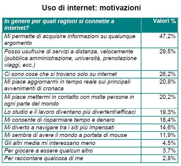 Dalla ricerca AW Trends emerge che le principali motivazioni all’uso di internet sono l’acquisizione di informazioni e la possibilità di usufruire di servizi come prenotare, rapporti con enti pubblici…